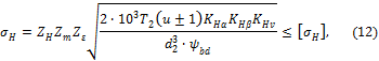 прочность по контактным напряжениям выполняется по формулам (12–15).