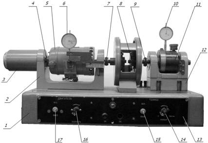 5. Поворотом ручки потенциометра 14 нагружать редуктор моментами различной величины.
