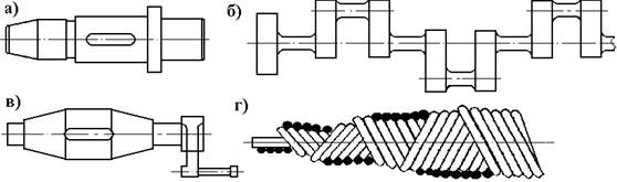 Оси представляют собой прямые стержни, а валы различают прямые (рисунок 1, а);