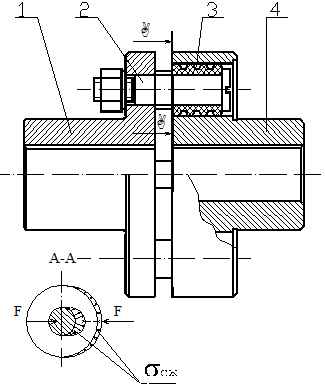 полумуфт 1 и 6, соединенных стальными цилиндрическими стержнями 4,