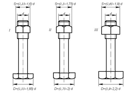 l1 = 1,25d – для резьбовых отверстий в деталях из ковкого и