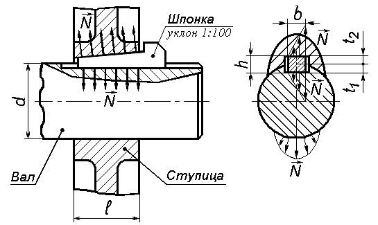 шпонки (1:100), что часто требует индивидуальной пригонки шпонки по